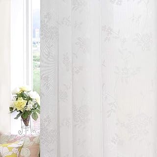 満天カーテン 【200サイズから選べる UVカット レースカーテン】お部屋が明るい!でもしっかり UVカット 外から見えにくい 洗濯可 レースローズ-ホワイト 幅100x丈198cm 2枚入