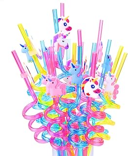 DreamJing 20Pcs Unicorn Drinking Straws, Reusable Plastic Novelty Crazy Party Straw Kids Birthday Party Supplies (Unicorn)