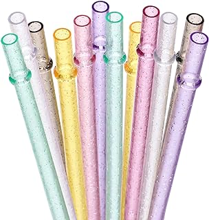 Dakoufish BPA-Free 12 Piece 11 Inch Reusable Clear Plastic Glitter Sparkle Drinking Straw Various Colors- Plus one cleaning brush (11インチ, マルチカラー)