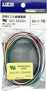 協和ハーモネット UL1007 AWG24 耐熱ビニル絶縁電線 2mX7色 黒白赤黄緑青茶