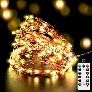Areskey LEDイルミネーションライト フェアリーライト USB式電源供給 100球 10M 100 LED Fairy Lights ジュエリーライト 防水ワイヤーライト 8種類の点滅モード リモコン付き 調節可能な明るさ 屋外 室内 寝室の装飾用 ガーデンライト 正月 クリスマス 飾り ストリングライト ロープライト Christmas Lights (ウォームホワイト)