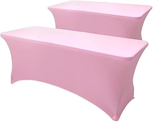 Hipinger 2パック ストレッチスパンデックステーブルカバー 6フィート 長方形テーブル用 長さ72インチ x 幅30インチ x 高さ30インチ 標準折りたたみテーブル用 (ピンク、6フィート)