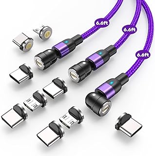 AUFU 540度 磁気充電ケーブル (3パック-6.6フィート/6.6フィート/6.6フィート) 磁気電話充電器 USB磁気ケーブル 3A 高速充電データ同期 ナイロン編組USBコードケーブル Micro USB Type C用