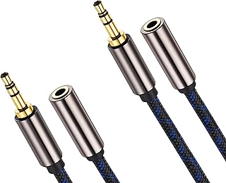 Ruaeoda ショートAUXヘッドホンコード延長コード 1フィート ダブルシールドブレイド 3.5mm 補助ステレオオーディオヘッドホン延長ケーブル 1フィート ナイロン編組オス-メス ショートAUX延長コード