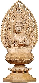 繁樓藝雕 仏像 虚空菩薩 仏壇仏像 置物 桧木製 木彫り 飛天光背 八角台座 丑年・寅年 開運十二干支お守り本尊 祈る 厄除け(高さ28cm×巾14.5cm×奥行12cm)