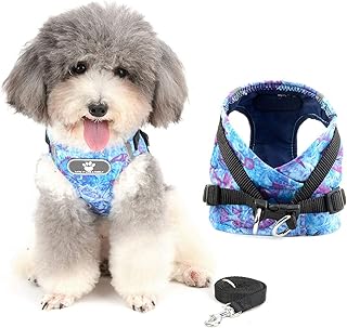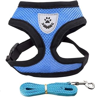 ZUNEA ペット 犬用 ハーネス リードセット 散歩用 おしゃれ 可愛い 小型犬 ベスト 調節可能 反射テープ 安全 胴輪 胸あて式 引っ張り防止 猫用 ハーネス 通気性 訓練 チワワ ウェア 訓練 出かけ用 ブルー S