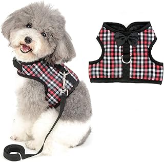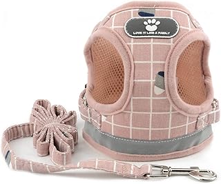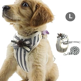 AeeYui ハーネス&リードセット 5-7.5kg 小型犬 猫 ハーネス 胸あて式 格子柄 通気 ソフト 調節可能 おしゃれ 首輪 リード 猫 犬用 チワワちゃん 散歩 (L)