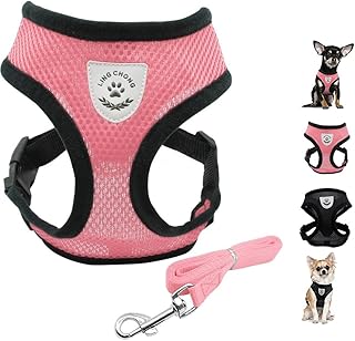 ZhengYue ハーネス & リード 選べる カラフルくま柄 胸あて式 軽量 調節可能 胴輪 ハーネス 犬/猫用 メッシュデザイン 通気性 小型犬/猫 ペット用品 調整が可能 メッシュデザイン 通気性 小型/中型犬/猫 ピンク散歩 が楽しくなる ピンク S