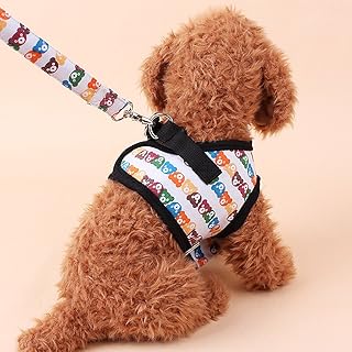 KISSFRIDAY ハーネス&リードセット 散歩 が楽しくなる選べる カラフルくま柄 胸あて式 軽量 調節可能 胴輪 ハーネス 犬/猫用 メッシュデザイン 通気性 小型犬/猫 ペット用品