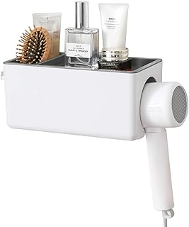 QIVANLIFE ヘアドライヤー 壁掛け棚ストレージオーガナイザー ドリル不要 ヘアドライヤー バスケット アクセサリーホルダー ラック シャワーキャディ (ホワイト)