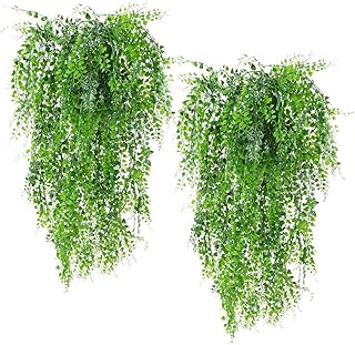 HUAESIN 人工植物 つる ボストン シダ フェイクハンギング植物屋外 耐紫外線プラスチック植物 壁 屋内 吊りバスケット ウェディングガーランド装飾 (2個)