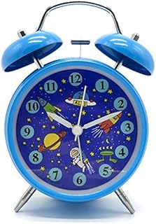 Savman 4インチ 目覚まし時計 アナログ おしゃれ 大音量 置き時計 ベル バックライト 電池式 明かり 光る 針時計 アラーム 単三 (Blue)