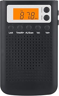 Yunchi ラジオ 小型ポータブル FM/AM 高感度受信クロックラジオ スピーカーとイヤホン付き機能 ミニデジタルチューニングウォークマンラジオ 電池式 LCD画面 スリープ機能 電源オフメモリ機能 - ブラック