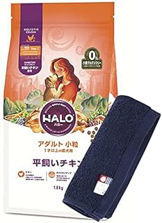 HALO(ハロー) 犬 アダルト 小粒 平飼いチキン 1.8kg 【犬想いオリジナル 今治ハンドタオルセット】【タオルカラー ネイビー】【正規品】